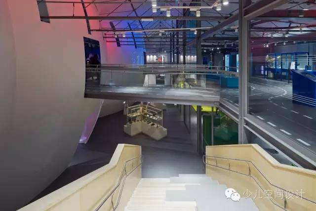 在大廳里,兩個宏大體量較天花板又上升了10米,一個體量繃緊而堅硬,另一個體量柔軟而具有波動性。它們由橋梁相連,人們通過橋梁來回走動。游客會產生“哇”的驚嘆感,并被引入充滿誘惑和想象力的迷人世界,它激發人們的欲望和好奇心來參與學習、探索和創造的過程。