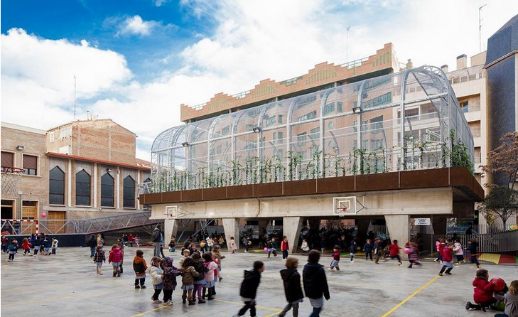 位于西班牙的Lasalle Franciscanas學(xué)校有一個(gè)神奇的“空中操場(chǎng)”。