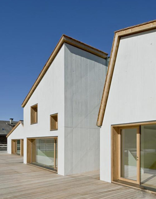 建筑外墻都是雙層的,暴露的的白色混凝土;結(jié)構(gòu)采用木制構(gòu)架。屋頂采用手切的松木屋面板瓦。 較低地坪的大開窗周圍覆蓋以豎向松木板。入口空間也采用暴露的混凝土,清晰的描繪出建筑結(jié)構(gòu)。僅僅在畫廊層采用了木頭。窗口帶來的不同景致,將群山景色送入眼簾。較低地平層的教室有近80平方米,是三個(gè)教室中最大的。以清晰、簡潔的線性設(shè)計(jì)。(幼兒園設(shè)計(jì))