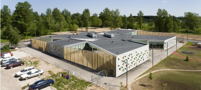 位于塔爾圖愛沙尼亞樂天幼兒園,幼兒園布局成六角形這是一個(gè)有著六片就像是翅膀一般的花瓣的花朵,幼兒園在一個(gè)非常有趣的地方就在所謂的唐人街也是前蘇聯(lián)軍事要塞的地點(diǎn),這所樂天幼兒園就建筑在軍用的公寓樓旁邊。