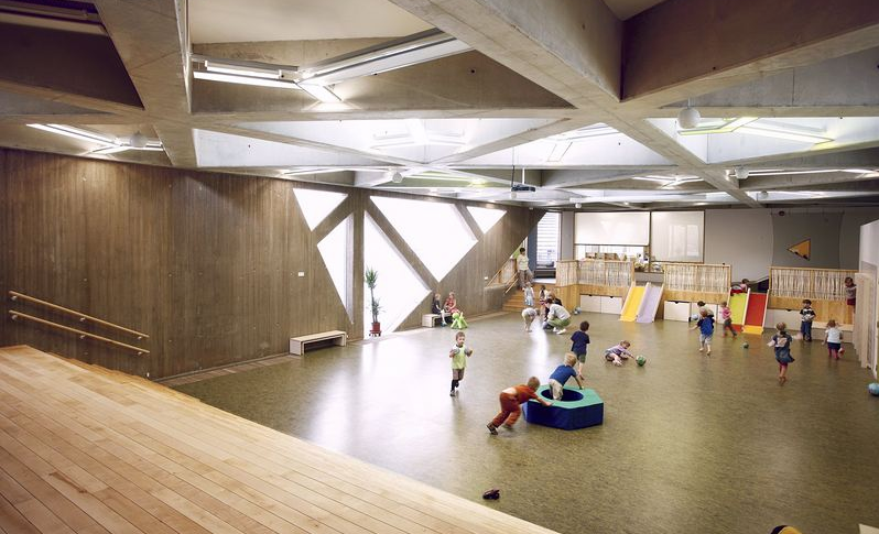 在幼兒園的周邊除了茂盛的綠植沒有什么特別漂亮的景色,但是幼兒園本身就是一個(gè)非常有內(nèi)在特色的景觀,這所樂天幼兒園有著屋頂會(huì)發(fā)光的神奇大廳,一路上都有著連綿不斷山丘、河流和峽谷的娛樂通道,還有一個(gè)把娛樂通道環(huán)繞起來的幼兒園中心作為孩子們的游戲區(qū)。