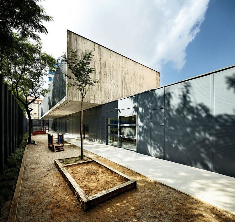 位于西班牙的巴薩羅納馬拉加幼兒園,重新設(shè)計(jì)的馬拉加庭院,坐落于巴薩羅那的街道內(nèi)部,與尼加拉瓜、柏林、紐馬以及埃涅伊德街道相鄰。它已升級成一小座教學(xué)樓:幼兒園。矩形的場所連接著分隔墻的其中一個封閉建筑體,另一面面對著庭院。
