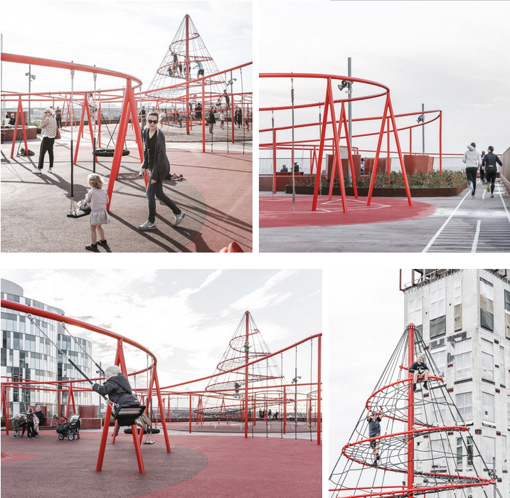 在停車(chē)場(chǎng)的樓頂還可以俯瞰壯觀的哥本哈根港口全景,在時(shí)間充裕的情況下可以帶著自己的親屬、孩子一起到樓頂上了樂(lè)園玩耍,停車(chē)游憩兩不誤。