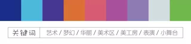 第四組 這一套顏色組合適用于舞臺、表演等等園內的表演活動,這組配色可以營造夢幻和華麗的感覺,而在呈現作品的美工區也可以考慮