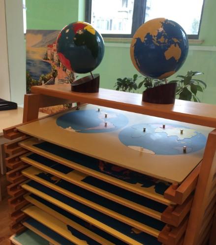 文化區(qū)則會有一些文化類的教具,比如世界地圖拼圖,孩子可以通過自己獨特的方式將世界地圖拼起來,在這個過程中了解一些基本知識。