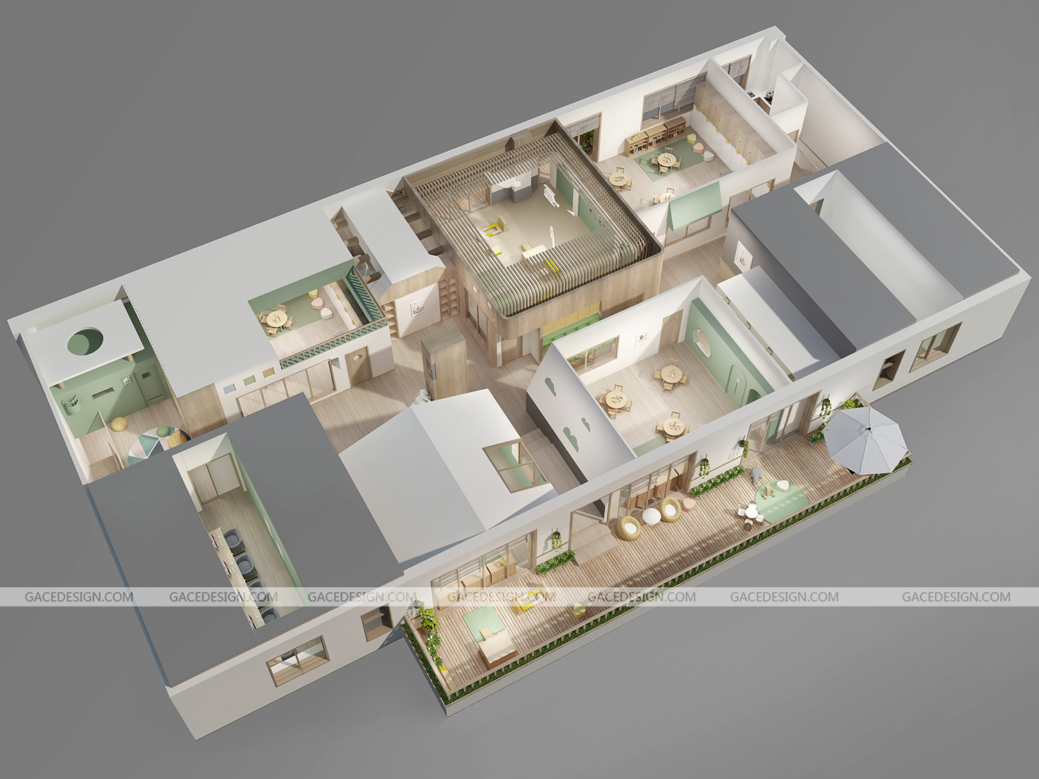 ① 輕快、活潑并有兒童建筑的特點,是幼兒園開展活動的最佳場所,也是孩子們自由發(fā)展的快樂天堂。
