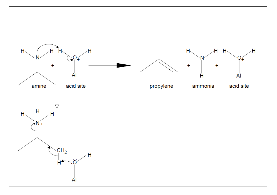 圖1.胺與酸位點(diǎn)反應(yīng),通過類似霍夫曼消除反應(yīng)分解成丙烯和氨